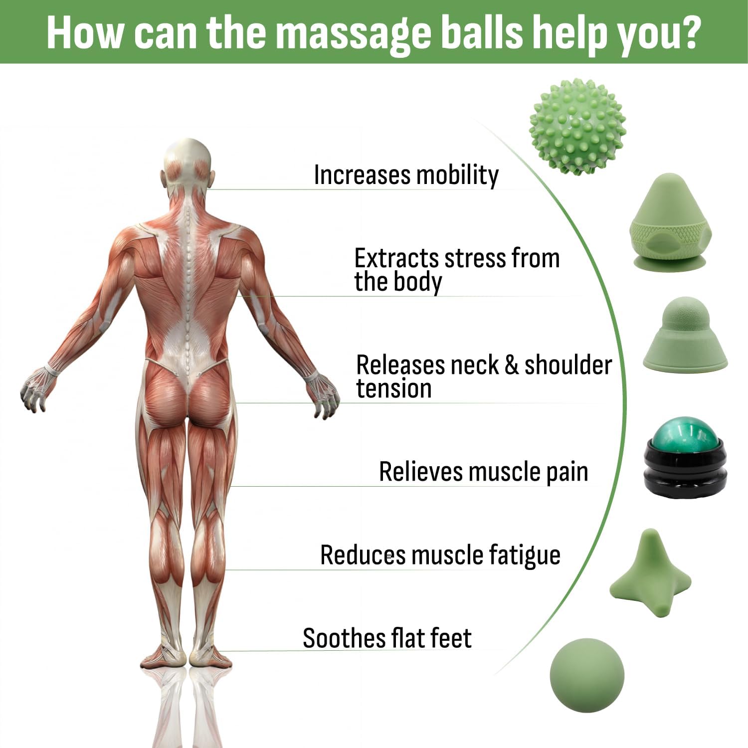 ⚪ 2 Bonus Therapy Balls – Varying firmness for customizable pressure and coverage.